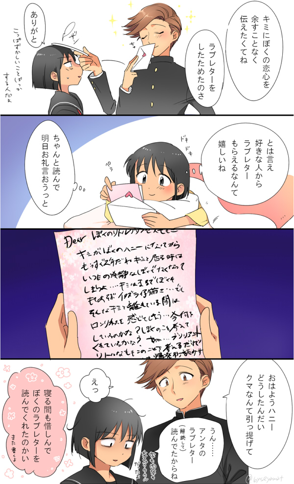 2017/08/06 Category : 絵 ドン 壁ドンの後日の各ドンの様子普段ラブラブなNLなんて描かないから花まるのラブラブはおかしな顔になりながら描いてる えらい恥ずかしい関係ないけどももこの高校生時代だと思うんだけど黒セーラーが本当に可愛い自分の学校は白セーラーもどきだったからちょっとうらやましいタグ:花まる 花輪和彦 さくらももこ