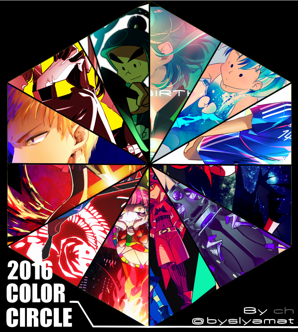 2017/02/01 Category : 絵 2016 2016年の絵で色相環やってみた~~もし全部の絵に見覚えのある方がいたら、御礼として金一封でも差し上げたいちなみに12時から時計回りで埼玉くん(人様っ子)→団蔵(忍たま)→三杉君(C翼)→東京くん(人様っ子)→ボナ(うちのこ)→伊助(忍たま)→お化けch(人様っ子)→虎若(忍たま)→窓付き(ゆめにっき)→東金(青鉄)→中央と総武(青鉄)→虎若(忍たま) でした1.2年くらい前だったら、どの絵も描いた記憶がまだあるこんなこと考えてたな~とかこんな曲きいてたな~とかそんなんもあと相変わらず一つの絵にメインの色一色っていうんじゃなくていろんな色使っちゃうから、色相環で何色に該当するかえらい迷う一年の振り返りするのも結構楽しい3年くらい前くらいの自分の絵は相当つらい 消し去りたい PR
