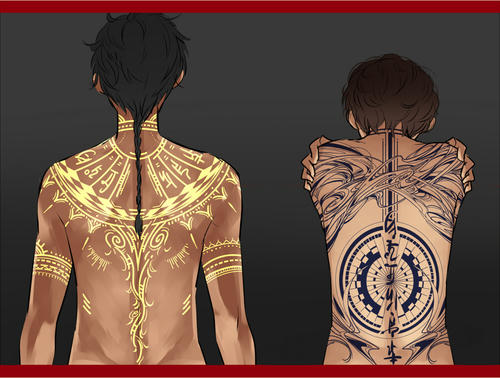 2018/04/11 Category : 絵 儀式 成人の儀式を妄想した奴15歳くらいになったら背中一面に刺青を彫られてそれにより成人として認められる(結婚とかできたり武器を持てる)三日三晩背中の激痛に耐えてこそ一人前の男と認められる的なアレ全部私の妄想 サルバディは沼タグ:キャプテン翼 エイブ・レオン ノエル・ポポロ