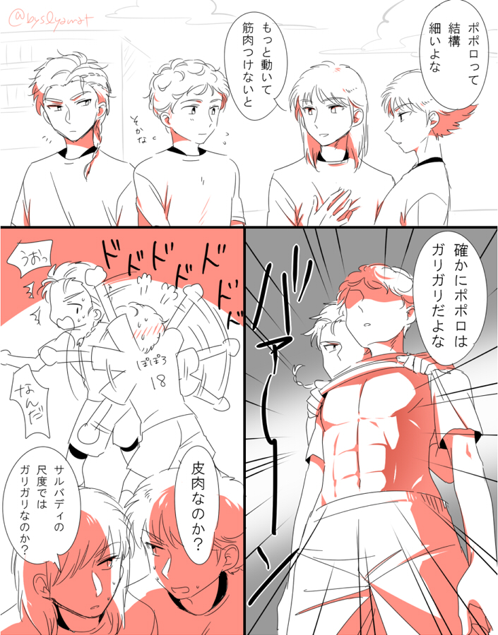 2018/03/15 Category : 絵 夢 優勝したらポポロがぶっとんできた時のレオンRSは全日本に負けてしまったけど、チーム力のある全日本に比べてできてすぐのチームだったし、個の力とチームワークを鍛えたらまさに銀河系軍団的な感じで敵なしにはなると思うRSとしてじゃなくてもいいから、ふたりが才能を買われて大手チームに入団して、戦争におびえることのない日常と好きなだけサッカーができる環境に身を置いて幸せに暮らしてくれたら嬉しい瞳に映ったら文字は反転すると思うけど見なかったことになったタグ:キャプテン翼 ノエル・ポポロ エイブ・レオン